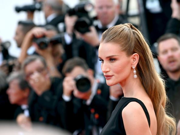 Dole je obula klasične crne špicaste štiklice na bosu nogu, a koje su svakoj ženi dobrodošle u ormaru. Za kraj, Rouzi je vezala kosu u visoki rep i stavila svetlucave minđušice. Savršena elegancija na cvenom tepihu!