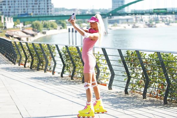 Odevena u roza boju od glave do pete, Sofija se provozala rolerima šetalištem. Na sebi je imala nežno roza bodi i ispod nejga biciklističke helanke. Kako bi se zaštitila od sunca na glavi neizostavni modni detalj bio i kačket, ali i ogromne slušalice oko vrata. Prava Barbika!