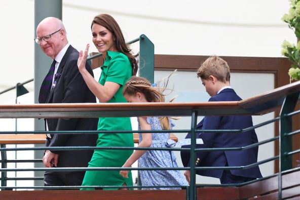 Kejt se pojavila na meču kako i dolikuje kodesku oblačenja na Vimbldonu, u elegantnoj modnoj kombinaciji. Za neke previše jednostavna zelena haljina, ali na princezi stoji kao salivena. Odlučila se za smaragdno zelenu haljinu ispod kolena koju je uparila sa malom bež torbicom i štiklicama u istoj nijansi. Iz prve lože s osmehom i aplauzom pomno prati svaki gem.Ostaje da sačekamo do kraja meča i vidimo da li će princeza kao i prošle godine lično da uruči pehar našem asu tenisa.