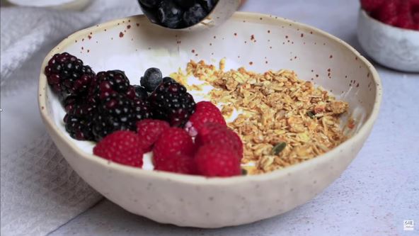 Grčki jogurt je bogat probioticima koji pomažu u održavanju zdrave ravnoteže crevne flore. Čia semenke su izvor vlakana i pomažu u održavanju zdrave probave. Dodajte nekoliko badema da ova kaša bude hrskava, a bonus je i što ćete uneti zdrave masnoće.