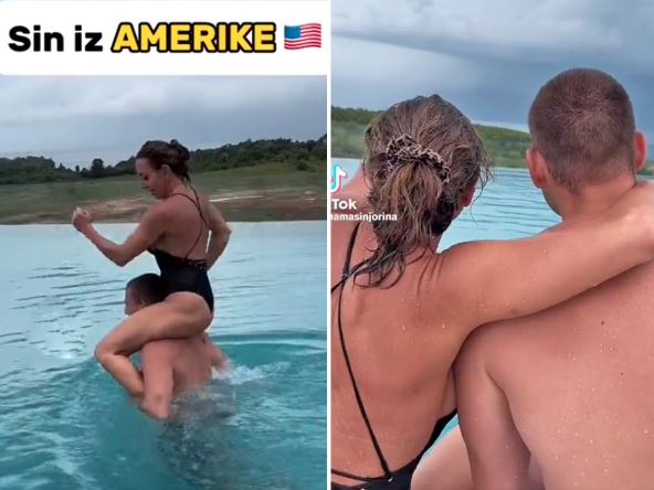 Na snimku se vidi koliko je ova mama radosna jer se njen sin vratio iz Amerike, a njeno izlaganje prate kadrovi na kojima se vidi kako majka i sin uživaju u zajedničkom odmoru. U jednom trenutku njen sin je nosi na krkačama kroz vodu, a upravo je ovaj prizor zasmetao korisnicima društvenih mreža.