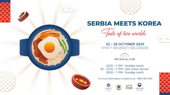 Hotel Hyatt Regency Beograd s ponosom predstavlja događaj „Ukusi Koreje u Srbiji: Fuzija dva sveta“, organizovan u saradnji sa Ambasadom Republike Koreje i Institutom za promociju korejske hrane, u trajanju od 22. do 29. oktobra.