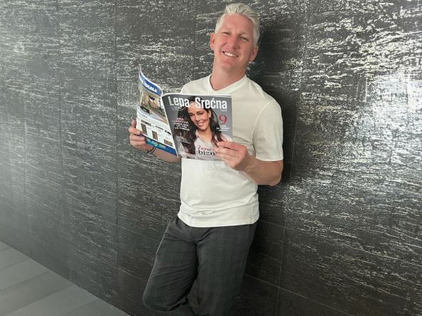 "Pogledajte ko je na naslovnici", poručio je Bastijan Švajnštajger uz fotografiju koju je upravo objavio na svom Instagram profilu. Sa osmehom na licu, u kežual izdanju, najpoznatiji srpski zet pokazao je kako uživa u čitanju magazina Lepa & srećna, koji je deo kompanije Wireless Media Group (WMG).
