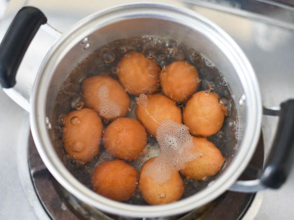 Ako želite da izbegnete zeleno žumance, trik profesionalaca krije se u kuvanju jaja na pari. Ovo je najbolji način za očuvanje hranljivih materija i sprečavanje žumanceta da dobije zelenu boju. Ako koristite šerpu, poklopite je nakon što voda proključa. Kuvajte jaja na pari 12 minuta i prebacite ih u ledenu vodu.