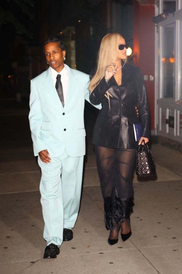 Paparaci su ih uhvatili kako ulaze u restorana skladno obučeni. Rijana je na sebi imala crni, koži sako, dok je dole obukla providnu suknju na karnere. Eleganciju su upotpunile niske salonke, crn atašnica i naočare. S druge srane, ASAP je izgledao kao da je izašao iz filma Doni Brasko. U belom odelu savršenog kroja izgledao je kao pravi gospodin,