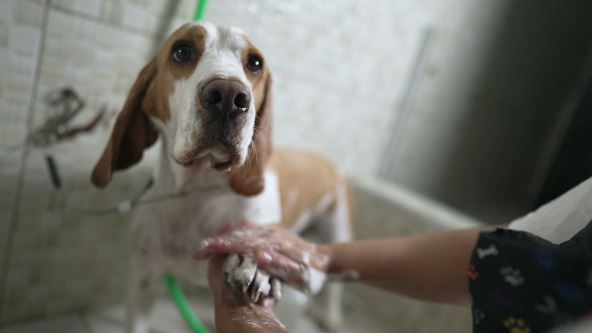 4. Pranje šapa psa - nakon što uklonite veću prljavštinu sa šapa, jednostavno ih navlažite, a zatim ih operite blagim šamponom za pse. Isperite kozmetiku i osušite šape. Vlažne maramice za pse takođe su korisne za brzo čišćenje šapa nakon šetnje.