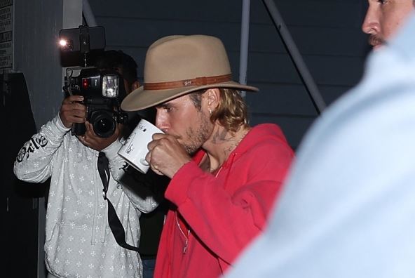 Ono što su svi primetili, to je da pevač nikad mršaviji nije bio, ali jednaku pažnju dobila je i njegova modna kombinacija o kojoj internet bruji. Džastin je bio bez majice, a obukao je crvenu duksericu i spuštene pantalone. Uz ovu kombinaciju upario je šešir braon boje. Dok je pijuckao iz šolje sa natpisom "Tata medved" i hodao iza svoje supruge, fotografi su uslikali predimenzionirane papuče luksuznog brenda.