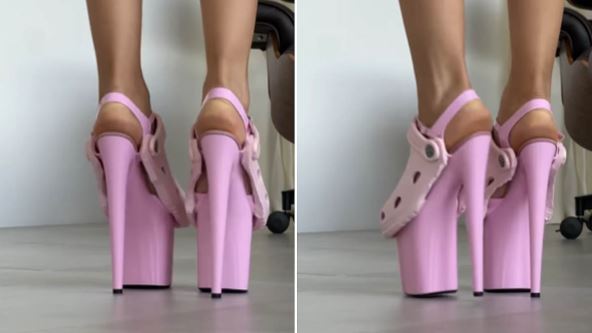 A sada je poznati brend iz Moskve, Exoheels, došao na ideju na koju nećete ostati imuni - spoj dva najomraženija tipa obuće. Reč je o modelu u roze boji, čiji se prednji deo sastoji od kroksica i ogromne platforme, a drugi od vrtoglavo visoke štikle. Većina ljudi je zgrožena, a zanimljivo je i da su muškarci reagovali.