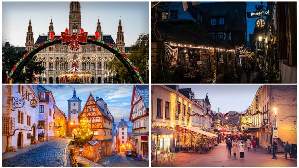 Smešten u srcu vinske doline Rajne, Rideshajm na Rajni je popularna destinacija tokom cele godine. Međutim, kada dođe Božić, on poprima posebnu atmosferu. Srednjovekovne građevine i uličice grada drže sve u prazničnoj atmosferi.