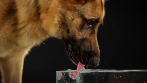 U normalnoj brzini, sve što vidimo jeste brčkanje, prskanje i mokre podove, ali kada se ta scena uspori, otkriva se prava mala umetnost - pas koristi svoj jezik kao kašiku. Na brz i precizan način, uvija jezik unazad i pravi "kašičicu" kojom zahvata vodu i zatim je usmerava pravo u usta. Samo prirodna snalažljivost.