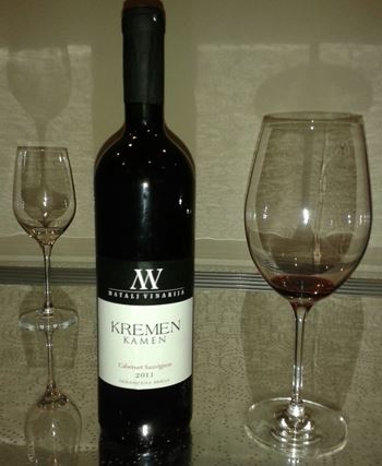 "Mi smo mala porodična vinarija, a naš vinograd leži na kamenu, zbog čega se ovo vino i zove 'Kremen Kamen'. U prodaji možete naći naše vino 'Kremen', iz našeg bazičnog nivoa ponude, takođe, odličan kaberne, a preporučio bih vam i naš šardone 'Terasa' iz 2012. koje je večeras osvojilo zlatnu medalju u kategoriji belih vina."