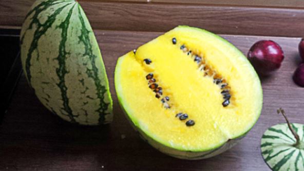 U pitanju je vrsta lubenice pod nazivom "Yellow Crimson", čija je unutrašnjost žuta, a ukus slađi i podseća na med.