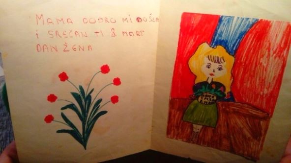 Ja sam u prvom razredu poklonila svojoj mami čestitku na kojoj je pisalo: "Volim tvoj blagi osmeh i plave oči", iako moja mama ima braon oči, ali je tako učiteljica napisala na tabli i ja se nisam usudila da menjam!