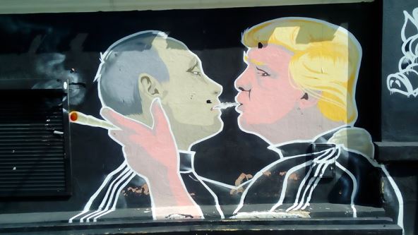Mural dvojice litvanskih "street art" umetnika pod nazivom "Make Everything Great Again" na kome se predsednici Rusije i SAD ljube osvanuo je 2016. godine, ali je u međuvremenu nekoliko puta menjan i dorađivan i trenutno najmoćniji ljudi sveta dele džoint.