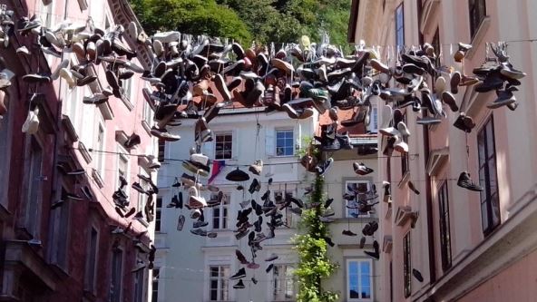 Navodno je "šou" sa patikama počeo upravo na Čevljarskom mostu, zaista u znak protesta protiv Janšine kulturne politike. Ipak, vremenom je od svega napravljena dobra šala, pa su fotke "ulice sa patikama" počele da zauzimaju svoje mesto na ljubljanskim razglednicama.