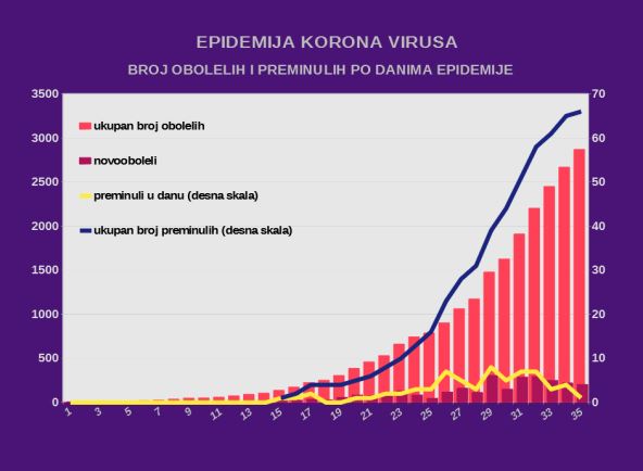 Prema poslednjim informacijama, u Srbiji je u poslednja 24 zaražena 201 osoba, a ukupno je zaraženo 2.867 osoba!