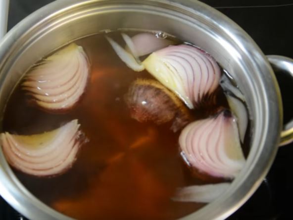 Vodi dodajte šećer, stavite na vatru i pustite da provri. Glavice luka isecite na četvrtine, ogulite koren đumbira, isecite ga na sitne komade i dodajte u zašećerenu vodu. Kad mešavina ponovno provri, dodajte kurkumu, pa smanjite vatru na laganu temperaturu. Mešavina neka se kuva sve dok se količina vode ne redukuje za pola. Zatim, smesu procedite i sipajte u teglu. Kada se potpuno ohladi, stavite je u frižider. Uzimajte dve kašike napitka ujutro na prazan stomak, kao i uveče, dva sata posle večere.