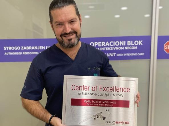 MediGroup Opšta bolnica zvanično je postala jedan od 20 Centara izvrsnosti na globalnom nivou za kompletno-endoskopsku minimalno invazivnu hirurgiju kičme. Nosilac ovog centra dr sci. med. Marko Marković, specijalista neurohirurgije i pionir minimalno invazivne hirurgije kičme u Srbiji i region, ističe da je to veliko, objektivno i zvanično priznanje. "Kompletno endoskopske operacije zahtevaju nešto duži period učenja zbog drugačije i do tada nepoznate operativne tehnike, stoga se ne rade u velikom broju centara, a ni od strane velikog broja doktora. Velika nam je čast što smo izabrani kao jedan od 20 centara u svetu, jer kada su u pitanju ovako visoko učestala oboljenja kičme, minimalno invazivna operacija je trenutno najbolji način njihovog rešavanja", ističe dr Marković.