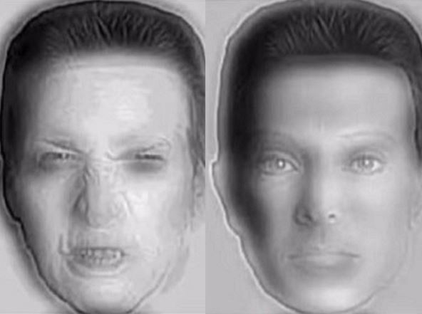 Stvar je u tome da se na obema ilustracijama kriju i ljutit i smiren izraz lica, ali su na levoj strani smirene crte lica "blurovane" tj. zamagljene, dok su desno zamagljene crte ljutitog izraza.