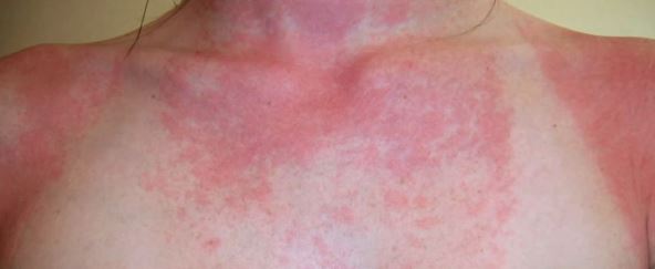 Izlaganje kože u periodima visokog UV zračenja i preterano sunčanje, može imati izuzetno štetne posledice po naše zdravlje koje se mogu manifestovati odmah, a to su alergije na sunce, sunčani eritemi i opekotine od sunca. Vidljivi, karakteristični simptomi su da koža postaje crvena, suva i ispucala, a može se pojaviti i osip koji je uglavnom praćen peckanjem i svrabom, a kod opekotina i bol.