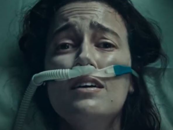 U videu koji traje samo 30 sekundi, fokus je na preznojenoj, prestravljenoj devojci u bolničkoj postelji, koja je na kiseoničnoj potpori. Pokušava da diše, ali ne uspeva, dok unezvereno očima traži pomoć.