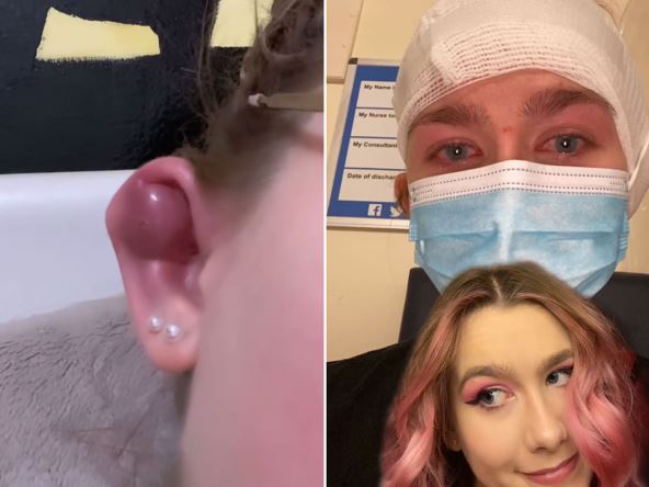 Snimak, koji su korisnici društvenih mreža pogledali preko 453.000 puta, otkrio je jezive posledice - vrh njenog uha je previše natekao i infekcija je bila opasna, zbog čega su joj lekari zavili glavu.