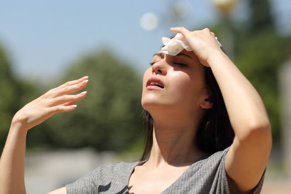 - Ubrzano disanje je varljiv simptom jer mislimo da smo se samo preforsirali ili umorili, posebno ako se po vrelom danu bavimo fizičkom aktivnošću. Uz ovaj simptom može se javiti i ubrzan rad srca, usled stresa pod kojim se organizam nalazi da bi omogućio spuštanje temperature tela.