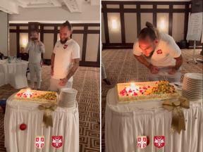 NEMANJA, NEK SE ISPUNI ŽELJA! MUNDIJAL NIJE POČEO, A "ORLOVI" VEĆ SLAVE: Pesmica, govor i torta za saigrače! (VIDEO)