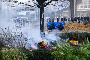 STOTINE TRAKTORA U BRISELU! Demonstranti gađaju policiju petardama, flašama i jajima, upotrebljeni vodeni topovi!