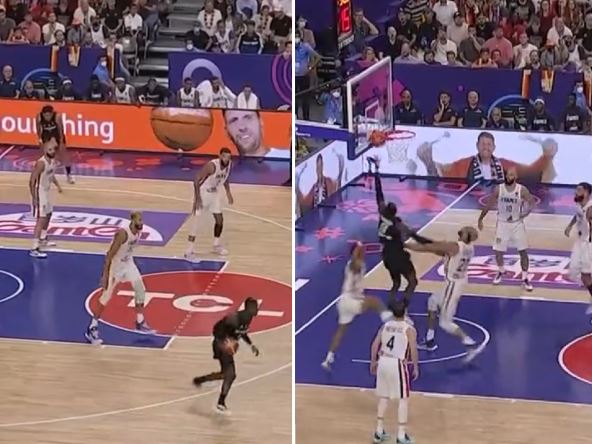 Na tri minuta do kraja meča, dok su Francuzi još gajili nade da mogu da preokrenu rezultat, francuski centar je katastrofalno pročitao akciju nemačkog tima i postao hit na društvenim mrežama. Denis Šruder, plejmejker sa bogatim NBA iskustvom, napravio je piruetu na sedam metara od koša, potpuno izbacio Gobera iz igre i onda se prošetao do obruča.
