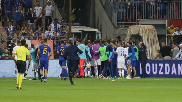 Sarajevski mediji prenose da su glavni akteri incidenta u kome su učestvovali gotovo svi igrači bili kapiten "zmajeva" Edin Džeko i grčki defanzivac Kostas Manolas, koji inače zajedno brane boje italijanske Rome.