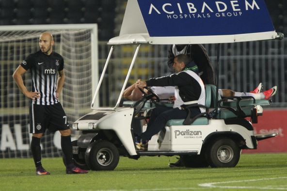 Posle duela u 78. minutu sa Evertonom Luizom napadač "brđana" ostao je da leži na travi, a prve porgnoza bila je da došlo do preloma noge.
