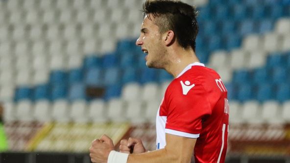 - GOOOL! Crvena zvezda vodi od 25. minuta lepim pogotkom Luke Adžića iz slobodnog udarca sa oko 20 metara.