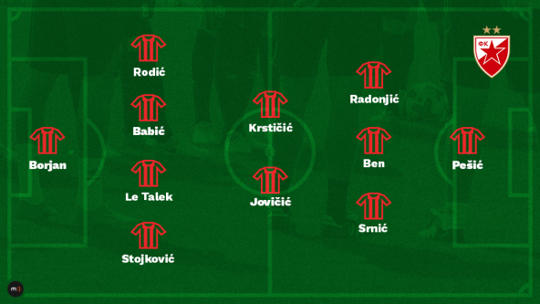 Dakle, očekivana startna postava Crvene zvezde u 157. "večitom derbiju" je: Borjan - Stojković, Le Talek, Babić, Rodić - Jovičić, Krstičić - Srnić, Ben, Radonjić - Pešić.