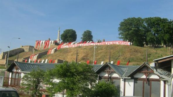 Navijači Crvene zvezde u četvrtak su duž zidina kalemegdanske tvrđave razvili crveno-bele zastave i pozvali druge pristalice kluba da 19. maja dođu na šampionsko slavlje koje će početi na stadionu Rajko Mitić, a potom biti nastavljeno šetnjom beogradskim ulicama.