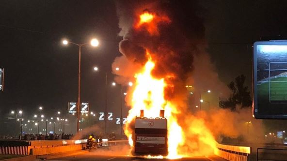 Šampionska vožnja u autobusu do Hrama Svetog Save, u pratnji navijača, prekinuta je kada je došlo do požara, nezvanično zbog baklji koje su upalili igrači!