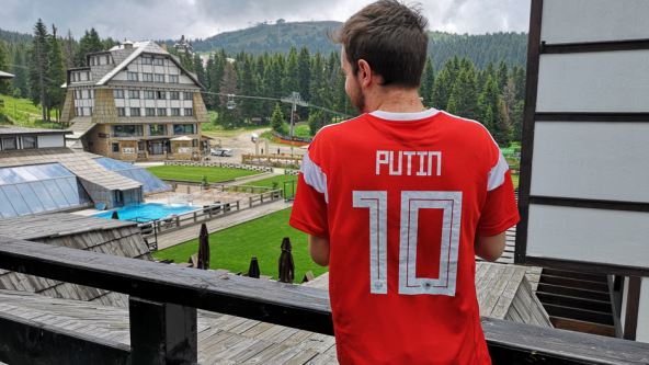 Momak koji prati ovaj događaj obukao je dres reprezentacije Rusije, sa imenom predsednika Rusije na leđima i tako je dao podršku Srbiji.