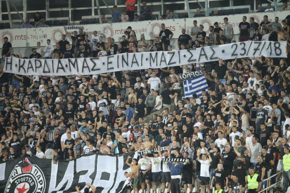 "Takođe apelujemo na sve navijače Partizana da ne kupuju karte za druge tribine osim za deo tribina namenjen za gostujuće navijace jer im, po dogovoru sa klubom domaćinom, neće biti dozvoljen ulaz u druge sektore iako imaju kartu. Posebno apelujemo na sve navijače da svojim ponašanjem pomognu klubu u borbi za grupnu fazu Lige Evrope i da i najmanji incident moze da ima dalekosežne posledice po klub imajući u vidu da je FK Partizan pod uslovnom kaznom".