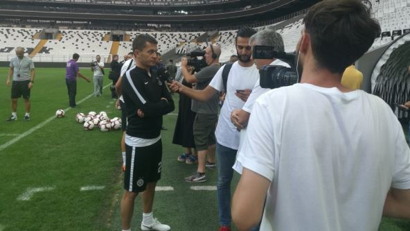 Kapiten Partizana bio je, zajedno sa trenerom Zoranom Batom Mirkovićem, određen da govori na konferenciji za novinare u sali veleleponog stadiona Bešiktaša, pred revanš meč u četvrtak uveče.