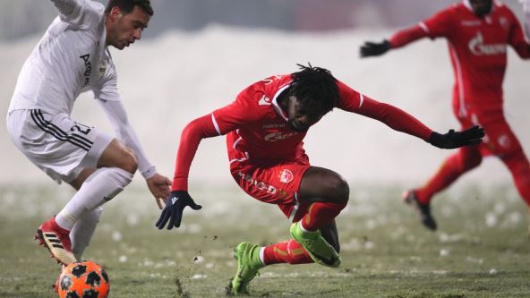 3' - Odmah šansa za Zvezdu i odbrana Nemanja Stevanovića posle lepog šuta Lorenca Ebisilija. Pokušao je da iskoristi sneg kao prednost Holanđanin, ali prva intervencija golmana Čukaričkog na meču.