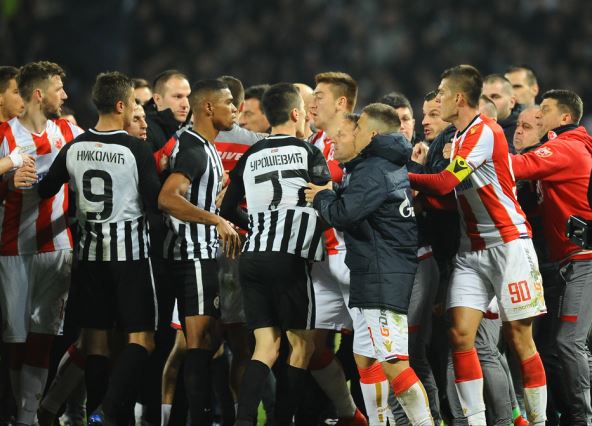 Vremenom, akumulacija nervoze na terenu dovela je gotovo do fizičkog obračuna između fudbalera i trenera dva tima, na usporenim snimcima moglo je da se primeti i da članovi stručnih štabova, računajući i trenera crno-belih Zorana Mirkovića, nisu doprinosili da se situacija smiri.