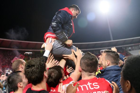 Odmah po završetku utakmice iznenadili su Vladana Milojevića i prekinuli ga u davanju izjave za TV Arena Sport. Umesto pred kamerom, trener crveno-belih našao se na rukama igrača koji su mu skadirali "srećan rođendan".