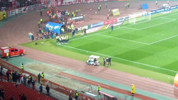 Odlični napadač iz Gane je stadion "Rajko Mitić" napustio u ambulantnom vozilu pošto je došlo do povrede kolena. On je napustio igru sredinom drugog poluvremena i još tokom utakmice se žalio na povredu, a više puta je bio na travi posle duela sa Crnomarkovićem.