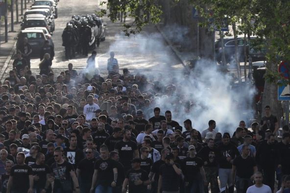 Jedna od tri frakcije navijača Partizana, okupljena oko grupe "Alkatraz", uz pratnju specijalnih jedinica MUP stigla je ispražnjenim ulicama do Stadiona "Rajko Mitić".