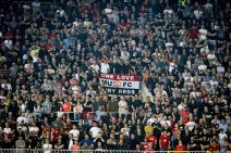 Na utakmici 3. kola Lige Evrope Partizan - Mančester junajted prošlog četvrtka u Beogradu (0:1), ta fakcija Grobara je istakla transparent na engleskom jeziku: "Divan dan za egzorcizam" (isterivanje đavola - "Crveni đavoli" je inače nadimak fudbalera Mančester junajteda).