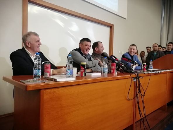U dupke punom amfitetatru pred studentima, kolegama, trenerima, članovima oba stručna štaba i predstavnicima medija, nekadašnji rekorderi po broju nastupa u državnom timu Srbije, govorili su na zanimljivu temu: Stručni aspekti u aktuelnom stanju u srpskom fudbalu.