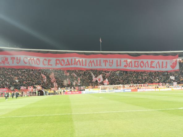 Dok se na suprotnoj strani stadiona polako smirivala tenzija zbog žestoke tuče navijača Partizana, najvatrenije pristalice Crvene zvezde "raširile" su stihove pokojnog pevača Luisa preko cele severne tribine, a potom i kompletirale koreografiju crveno-belim zastavicama iznad kojih je moglo jasno da se pročita: