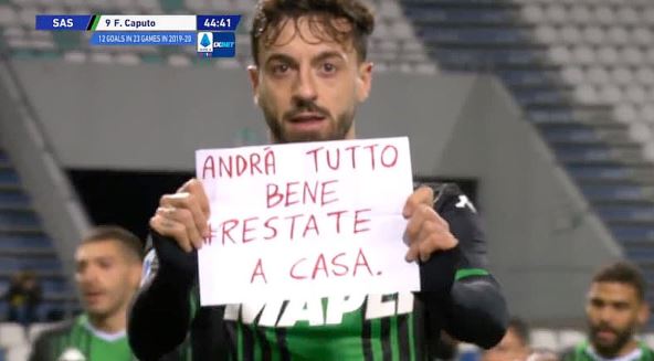 Naime, na utakmici Sasuolo - Breša, strelac prvog gola na meču bio je Frančesko Kaputo u nadoknadi prvog poluvremena, a nakon što je zatresao mrežu gostiju, podigao je svoju poruku i stavio je ispred kamere koja ga je snimala.