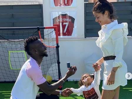 "Oprosti mi dušo. Sve sam drugačije zamišljao... U krugu porodice, prijatelja, ali s obzirom na to kakve su okolnosti, morao sam promeniti mesto i društvo", napisao je Žunior ispod fotografije na kojoj kleči ispred Fabiole držeći verenički prsten u jednoj, a njihovu kćerku Ajlen u drugoj ruci.