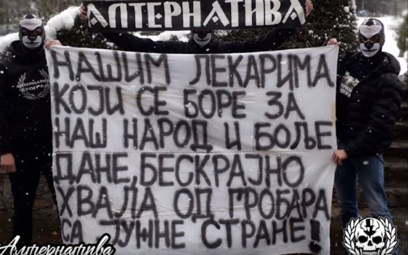 "Našim lekarima koji se bore za naš narod i bolje dane, beskrajno hvala od Grobara sa južne strane".